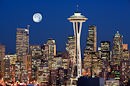 Full moon rising over downtown Seattle
